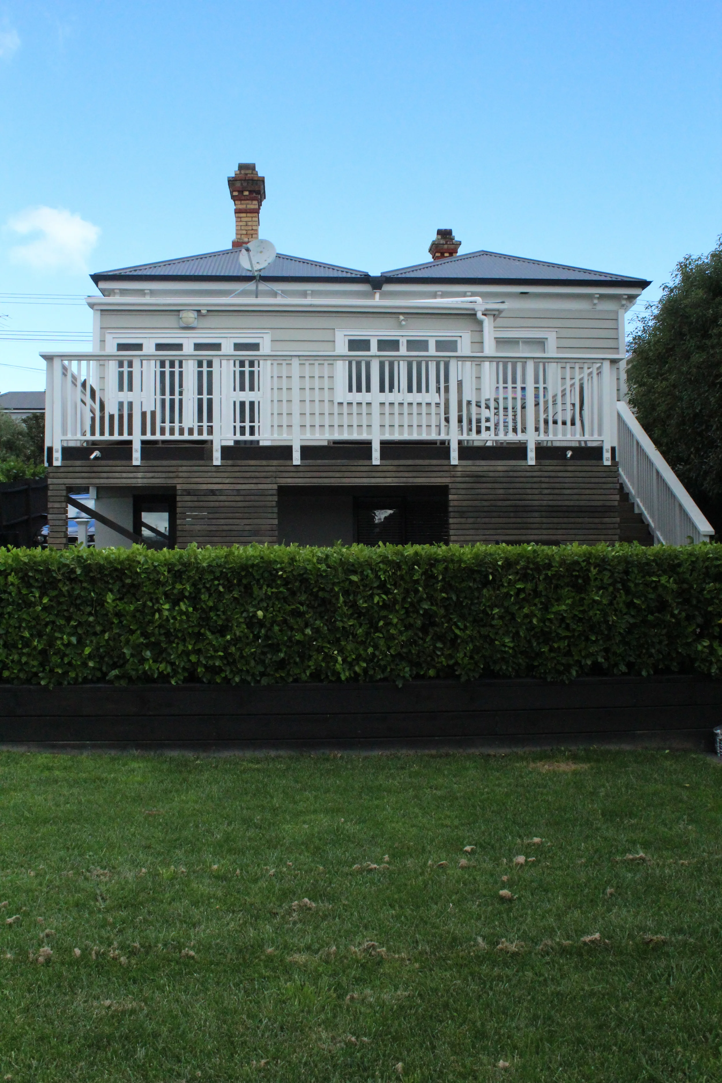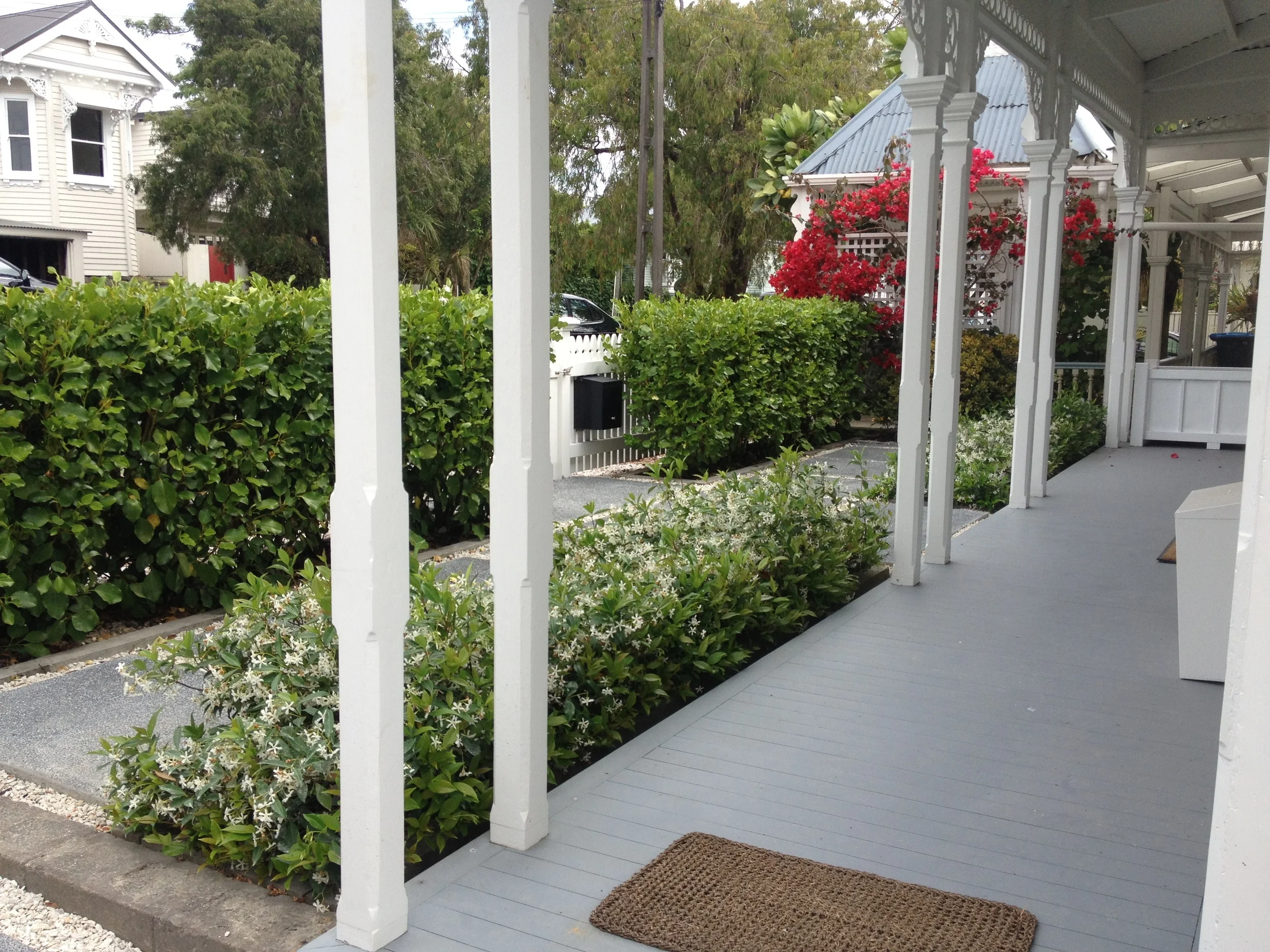 A classic picket fence and a concrete paved entry way compliments the front of this traditional villa style home, whilst a backyard area with three different levels adds a more stylish contemporary feel to this inner city family home. With a sloping site, retaining walls create a lower level lawn area, edged with Magnolia little gems for privacy from the neighbouring properties. The upper and lower hardwood decks create two outdoor entertaining areas that flow from the house and connect to the lower garden. Custom table and bench seats were installed in the lower bbq deck area. A classic planting scheme of magnolia, buxus and star jasmine were used to compliment the traditional villa style.